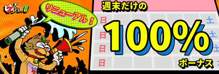 そして、7SPIN(セブンスピン)には、週末限定100%ボーナスもあります。