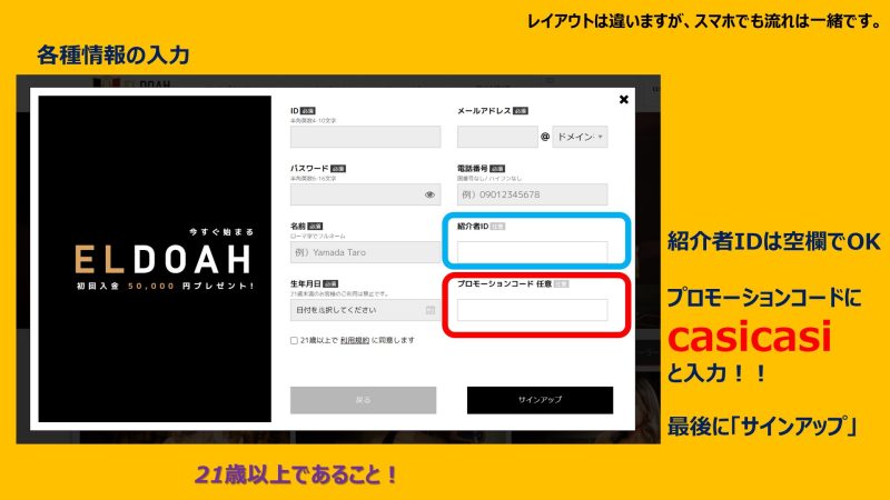 エルドアカジノ(ELDOAH Casino)への登録方法