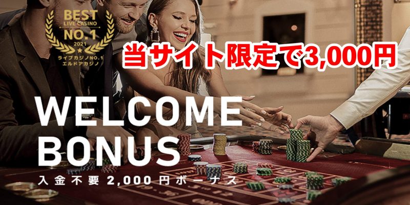 ※エルドアカジノの入金不要ボーナスは賭け条件たったの1倍の超優良ボーナス!