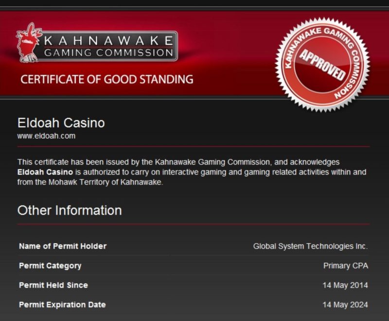 その点ではエルドアカジノはカナワケ(KAHNAWAKE)ライセンスを保有しています。